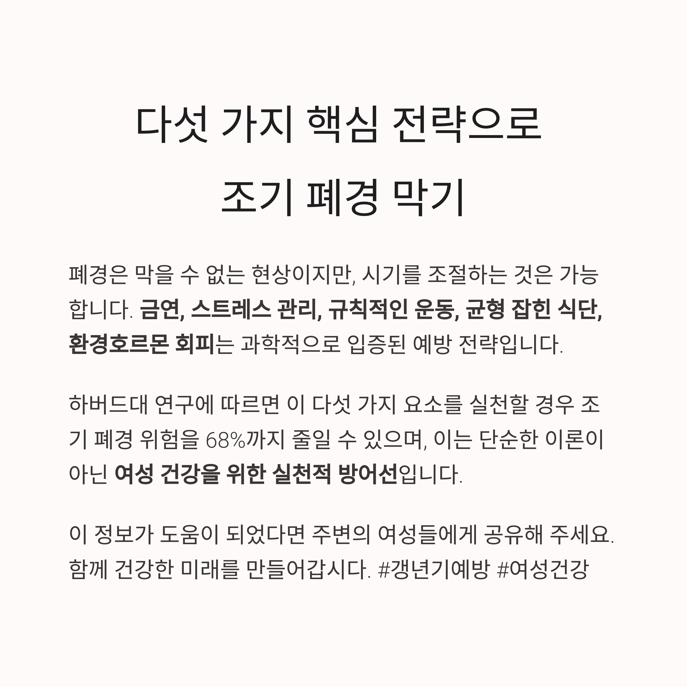 결론: 다섯 가지 핵심 전략으로 조기 폐경 막기