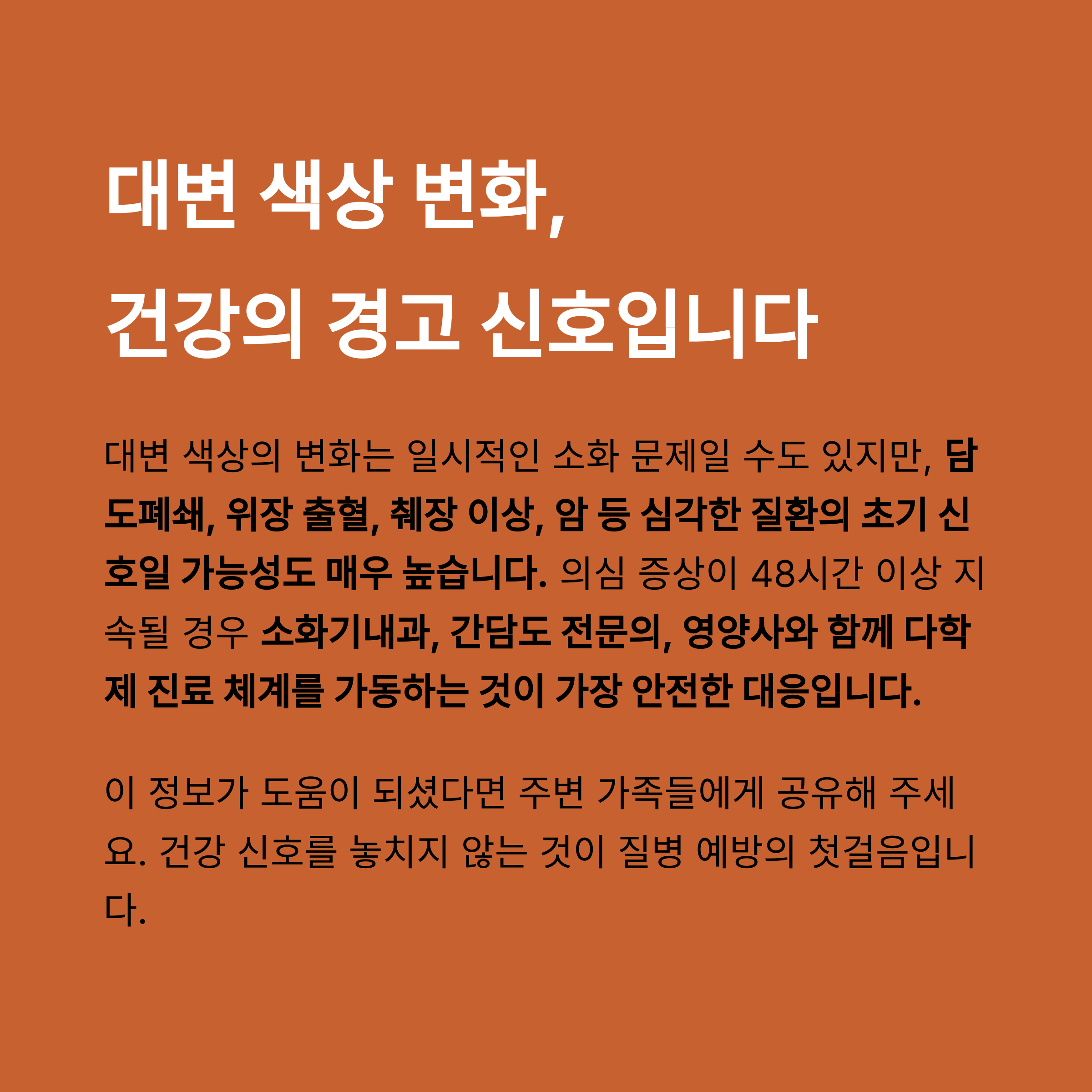 대변 색상의 변화는 일시적인 소화 문제일 수도 있지만,
