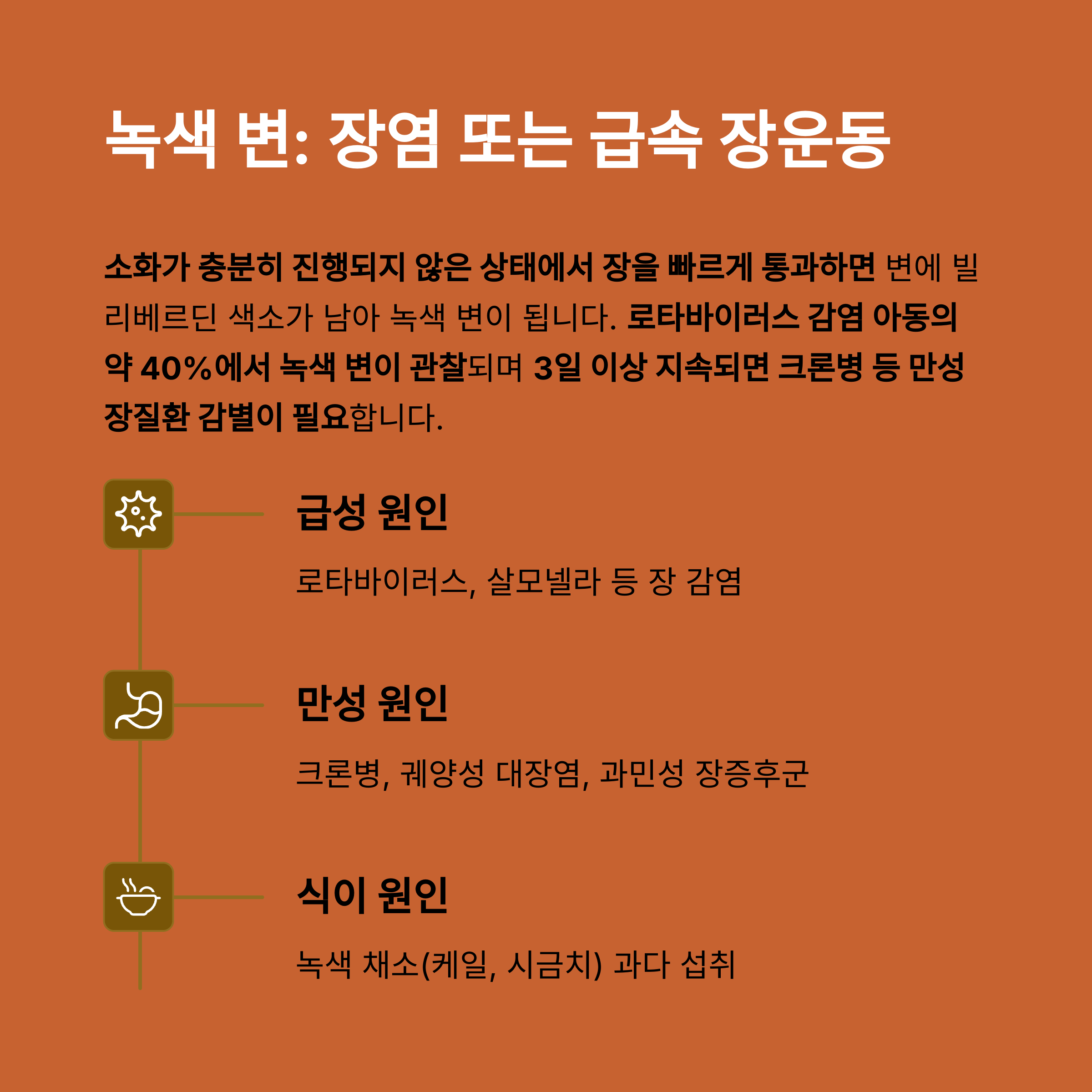 로타바이러스 감염 아동의 약 40%에서 녹색 변이 관찰되며