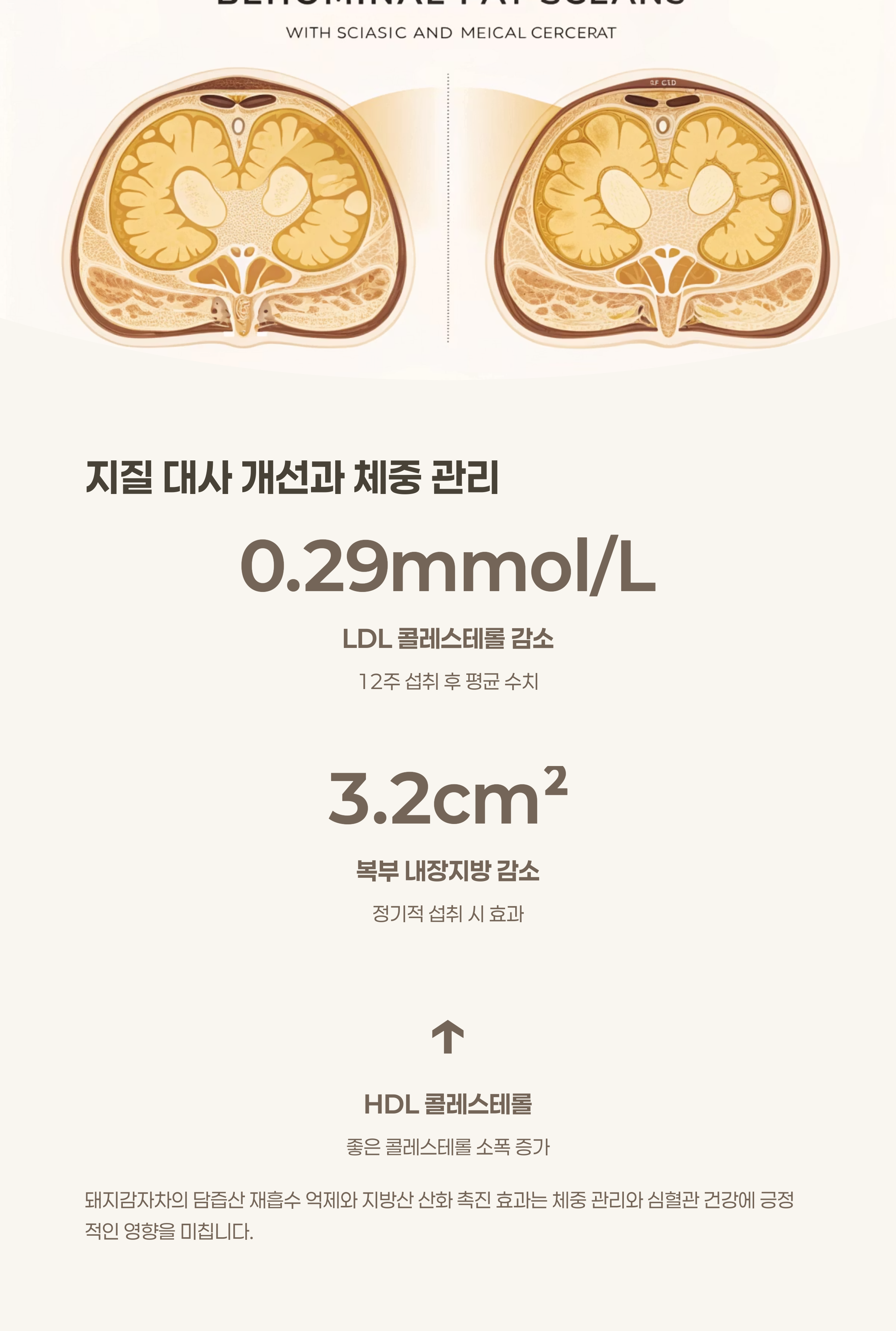 HDL은 소폭 증가, 복부 내장지방이 평균 3.2cm² 감소한 결과가 확인되었습니다