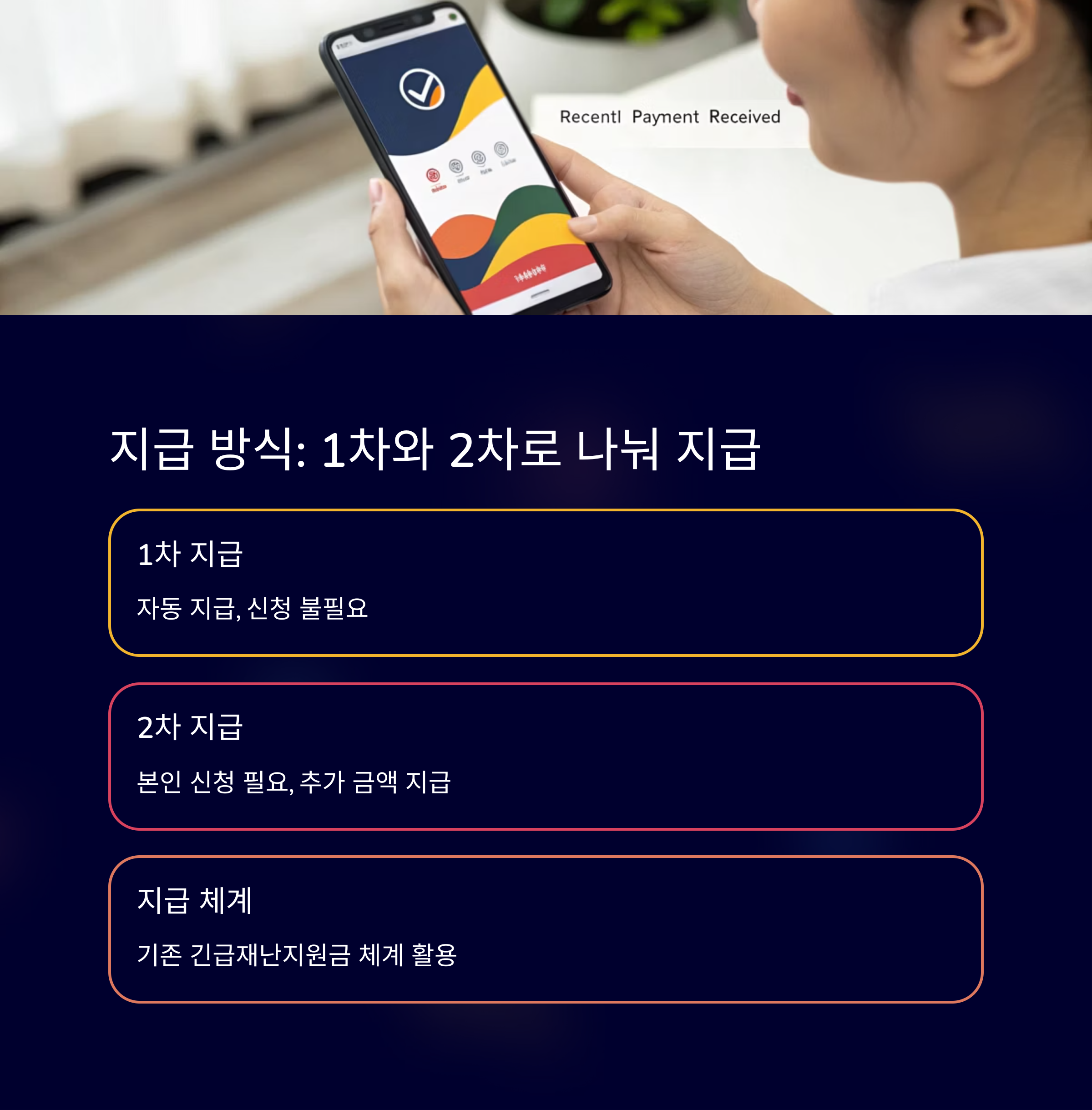 1차로 기본 금액이 지급되고, 추가로 신청 시 2차 금액이 더해지는 방식입니다.