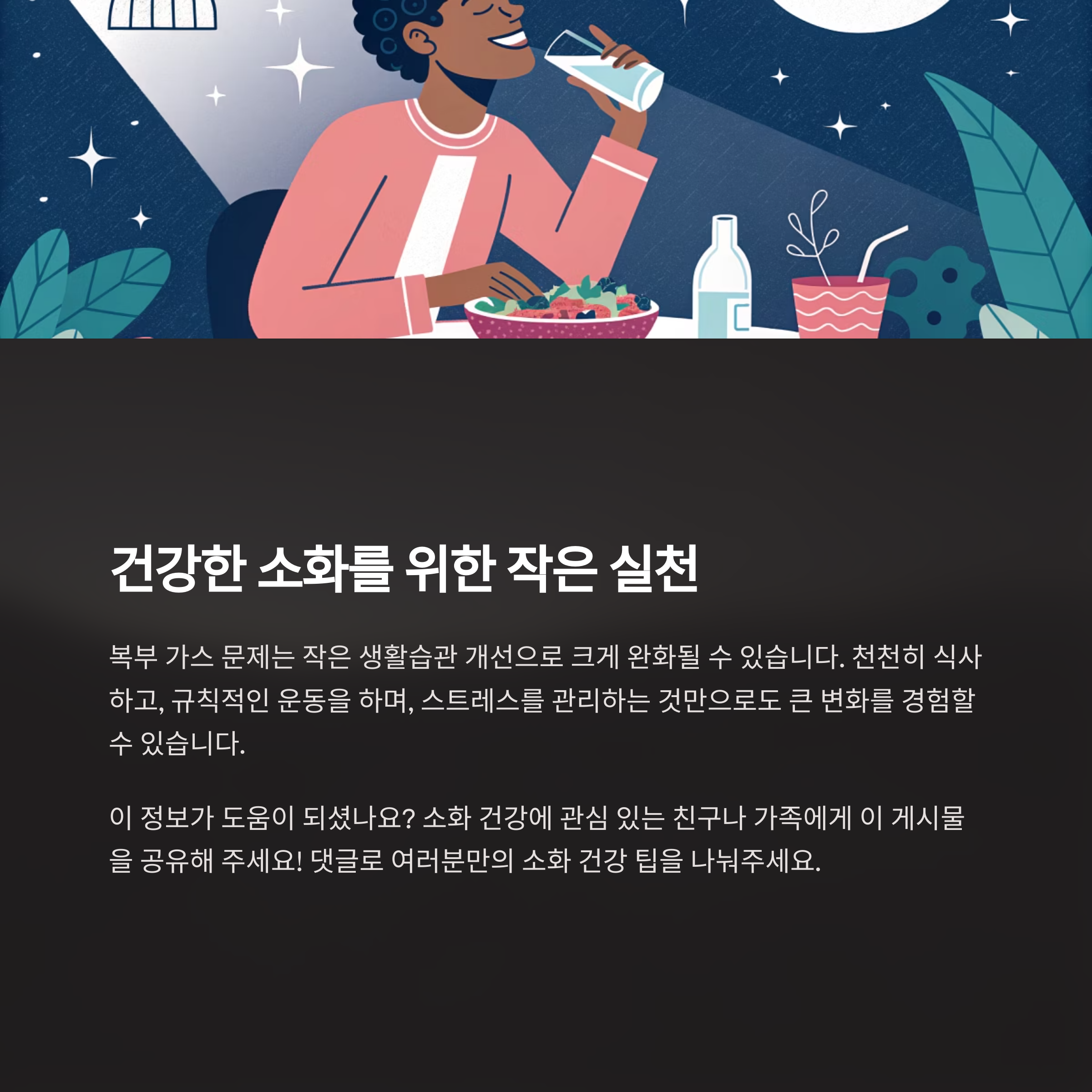 건강한 생활습관은 복부 가스를 줄이는 데 핵심입니다.