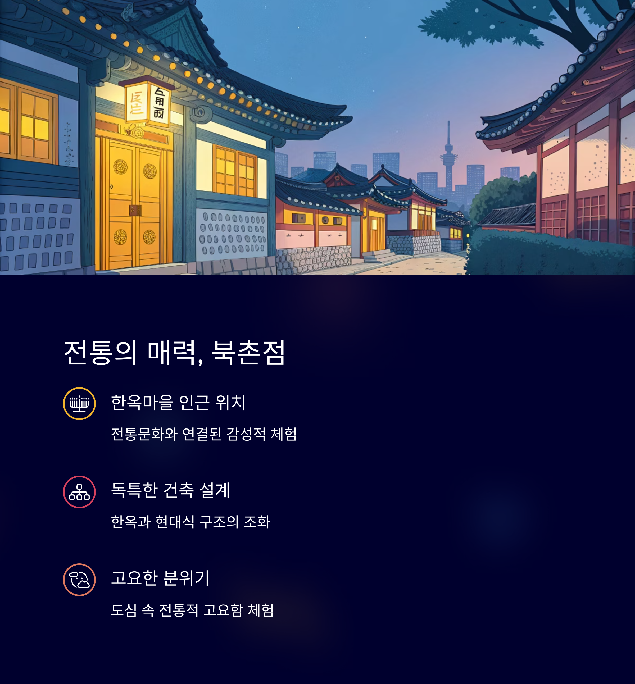 건축적으로도 한옥과 현대식 구조가 조화를 이루는 독특한 설계가 적용되어 있습니다.