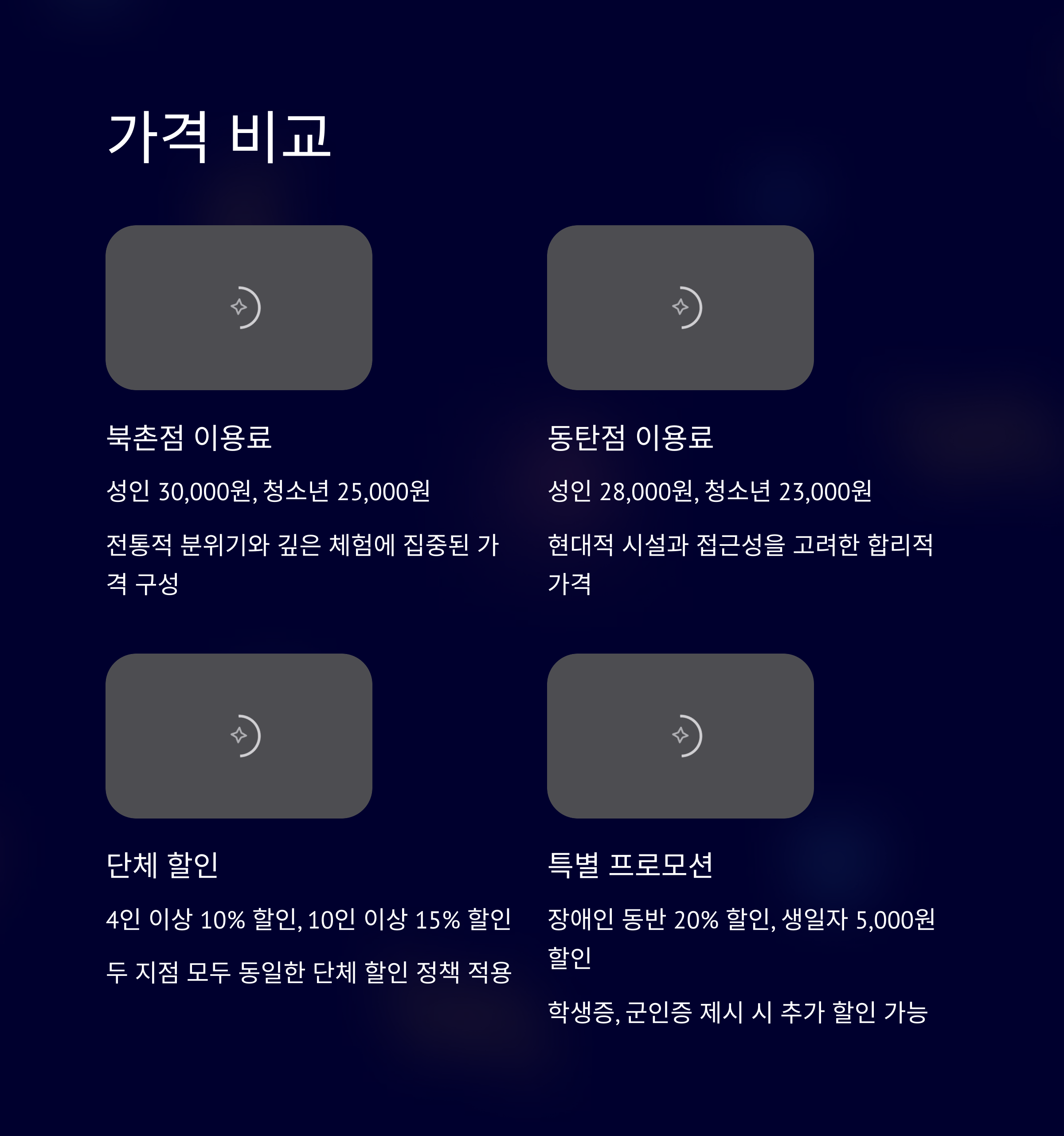 북촌점은 전통 마을과 연결된 체험지로, 체험 외 활동은 제한적입니다.