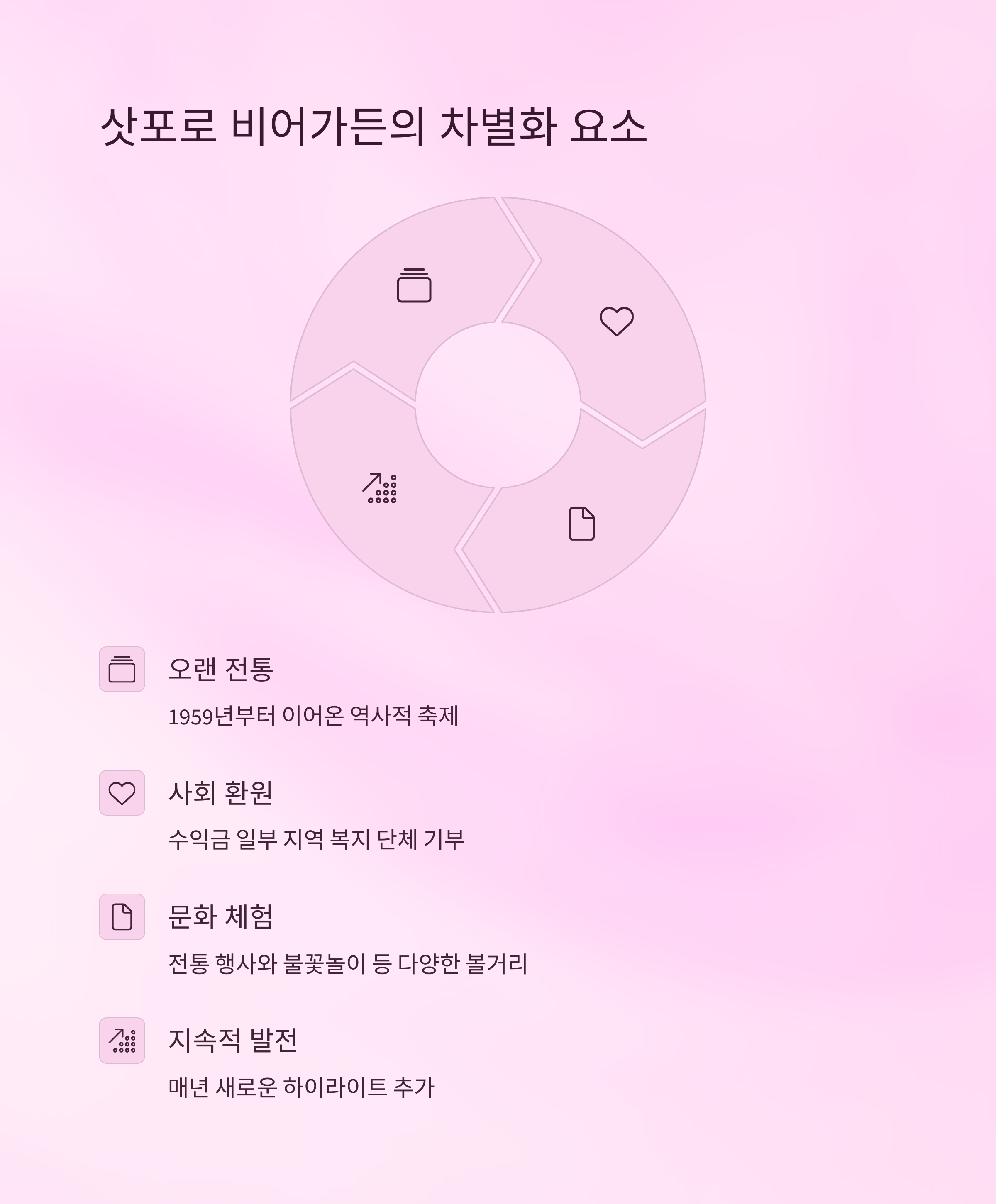 삿포로 비어가든은 단순히 음료와 음식을 즐기는 이벤트를 넘어 지역 문화를 소개합니다.