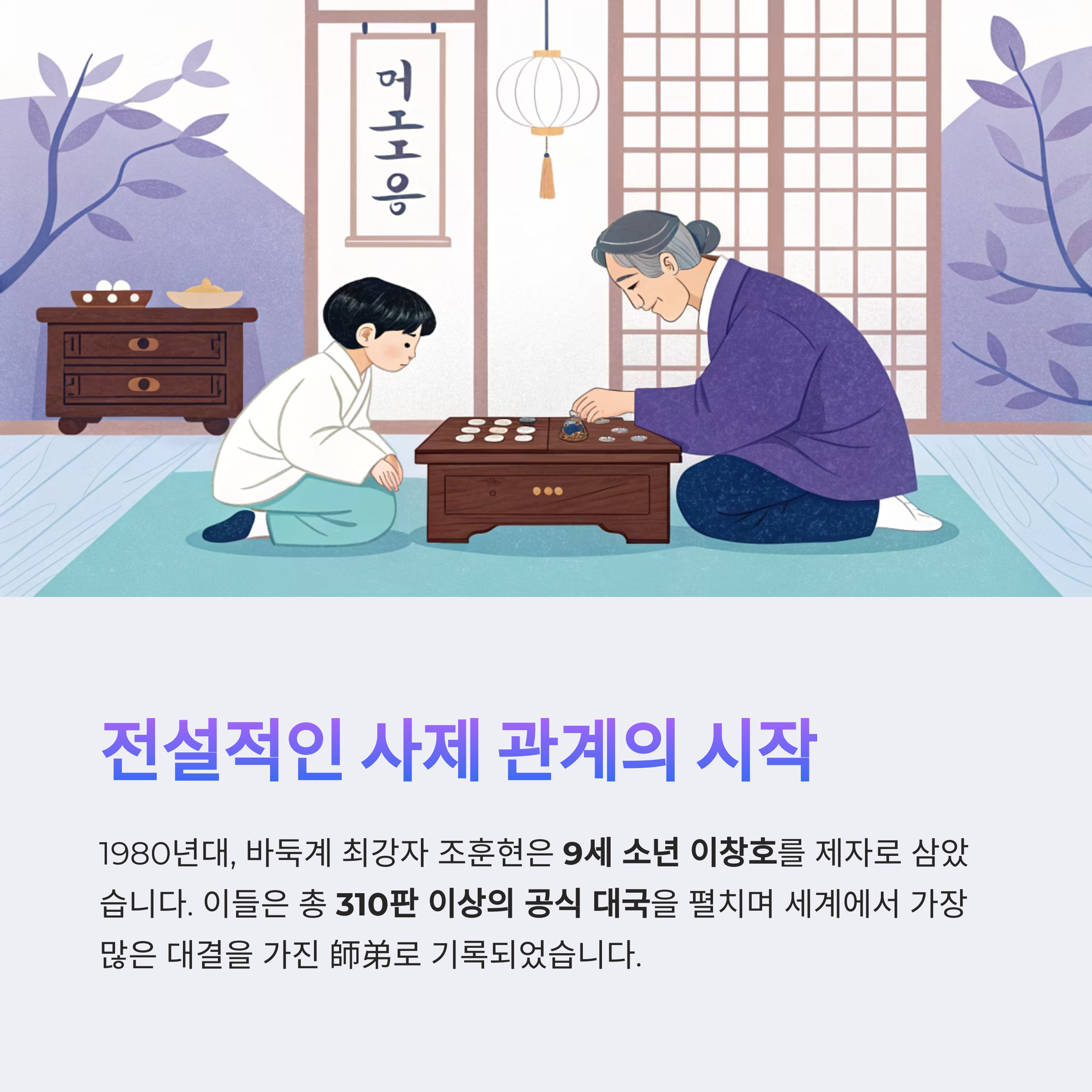그러던 중, 9세 소년 이창호를 제자로 삼으며 한 시대의 인연이 시작됐습니다.