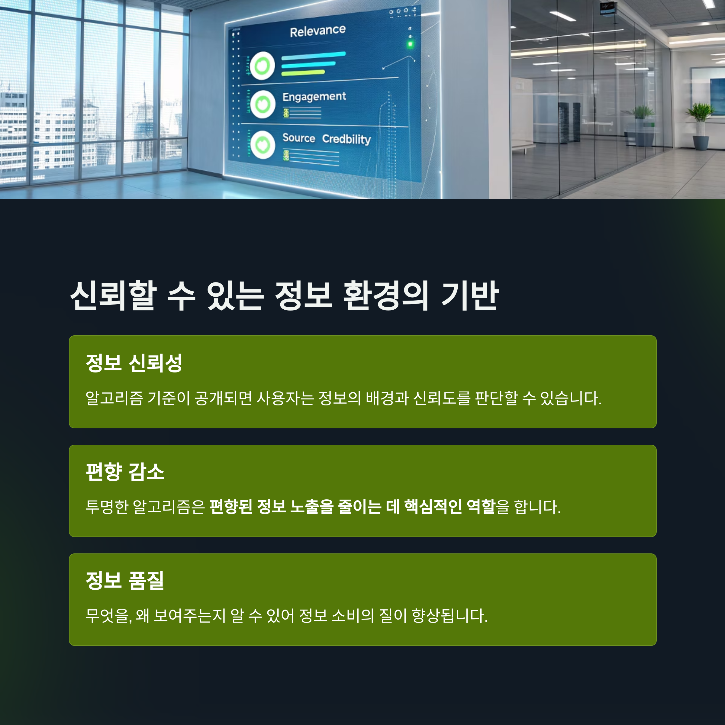알고리즘의 투명성은 정보의 신뢰성과 직결됩니다.