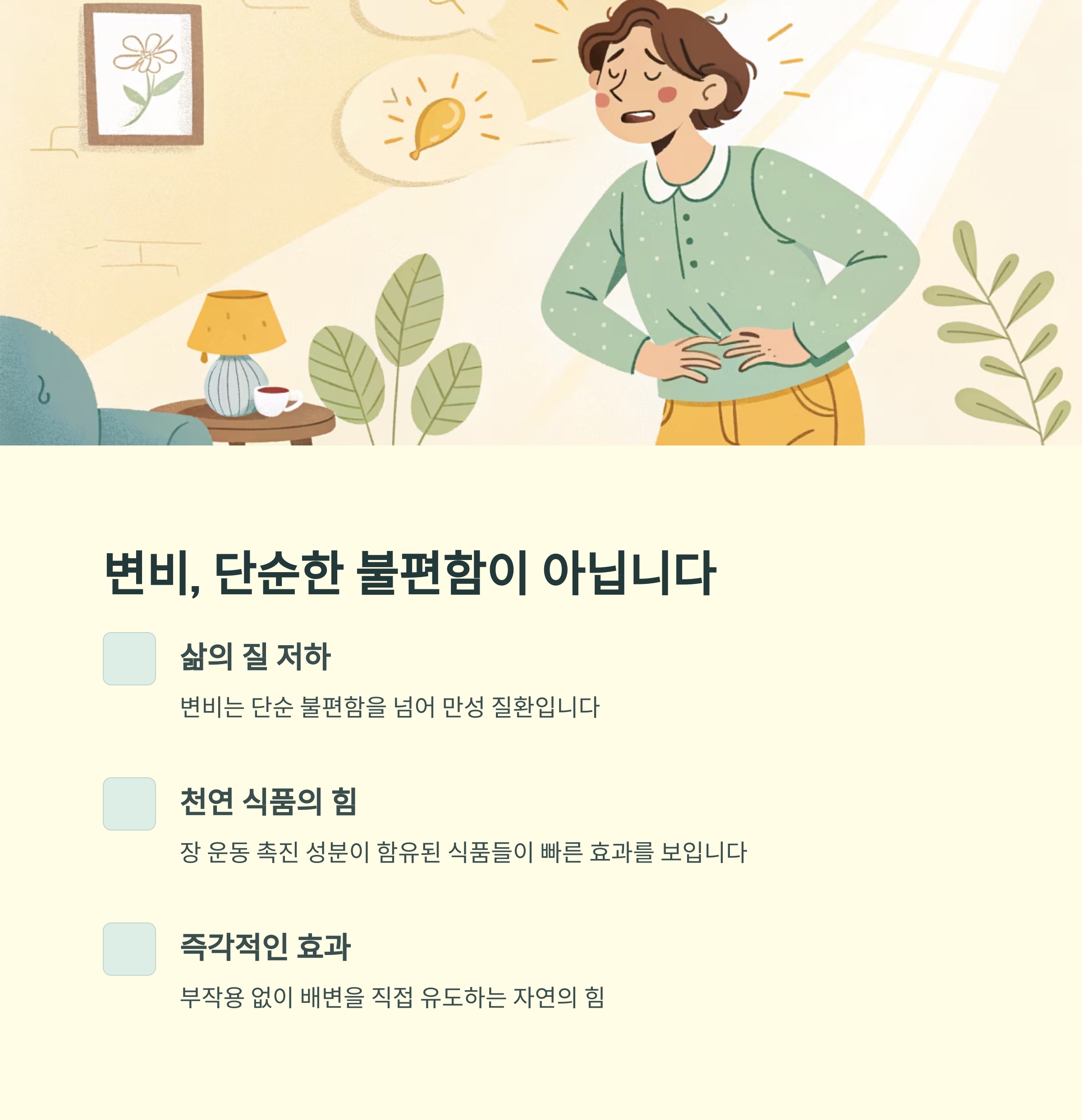 변비는 단순한 불편함을 넘어 삶의 질을 저하시키는 만성 질환입니다.