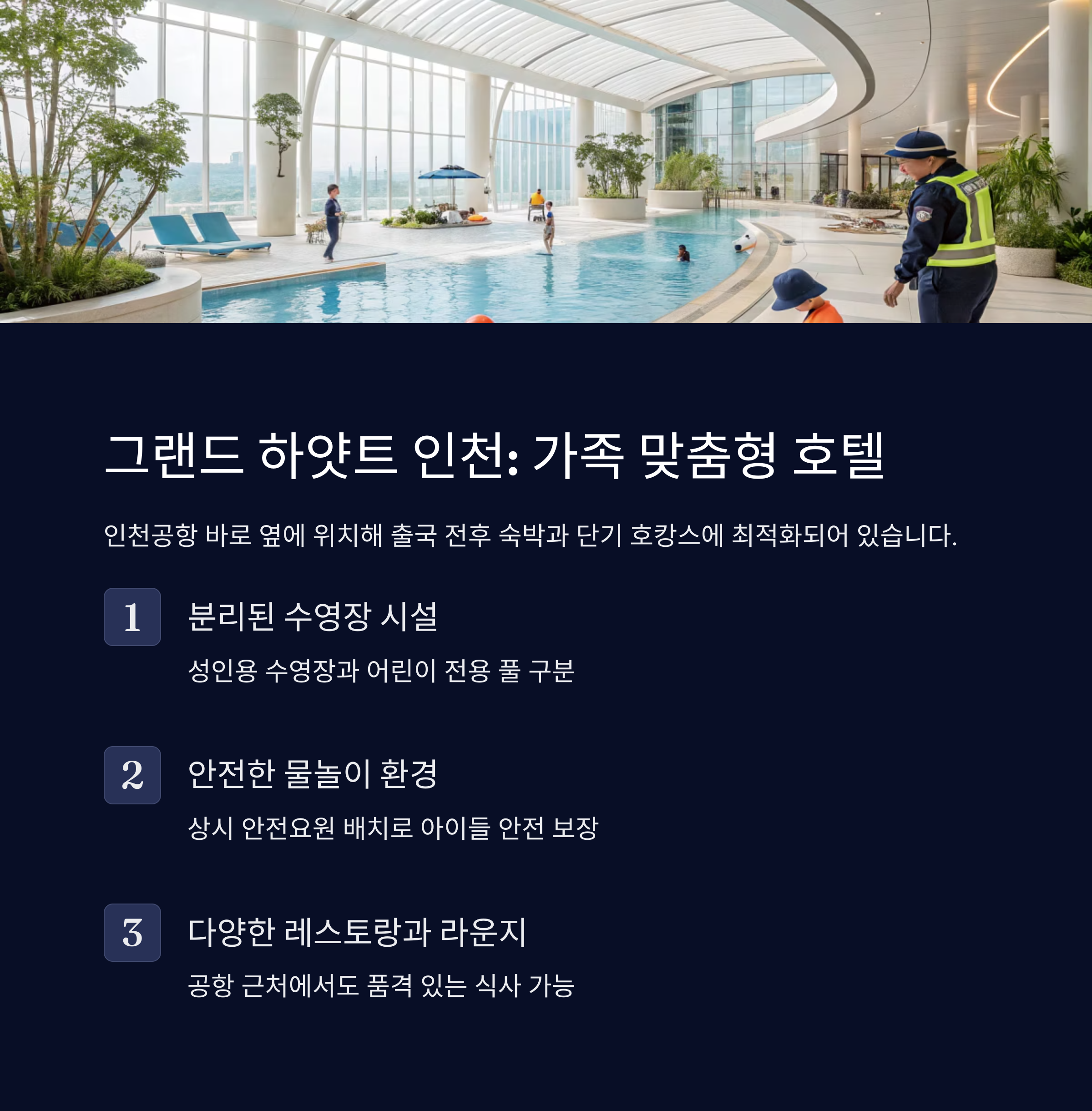 | 그랜드 하얏트 인천 | 공항 인접, 가족 맞춤 수영장, 어린이 안전시설 완비 | 인천공항 인근 |