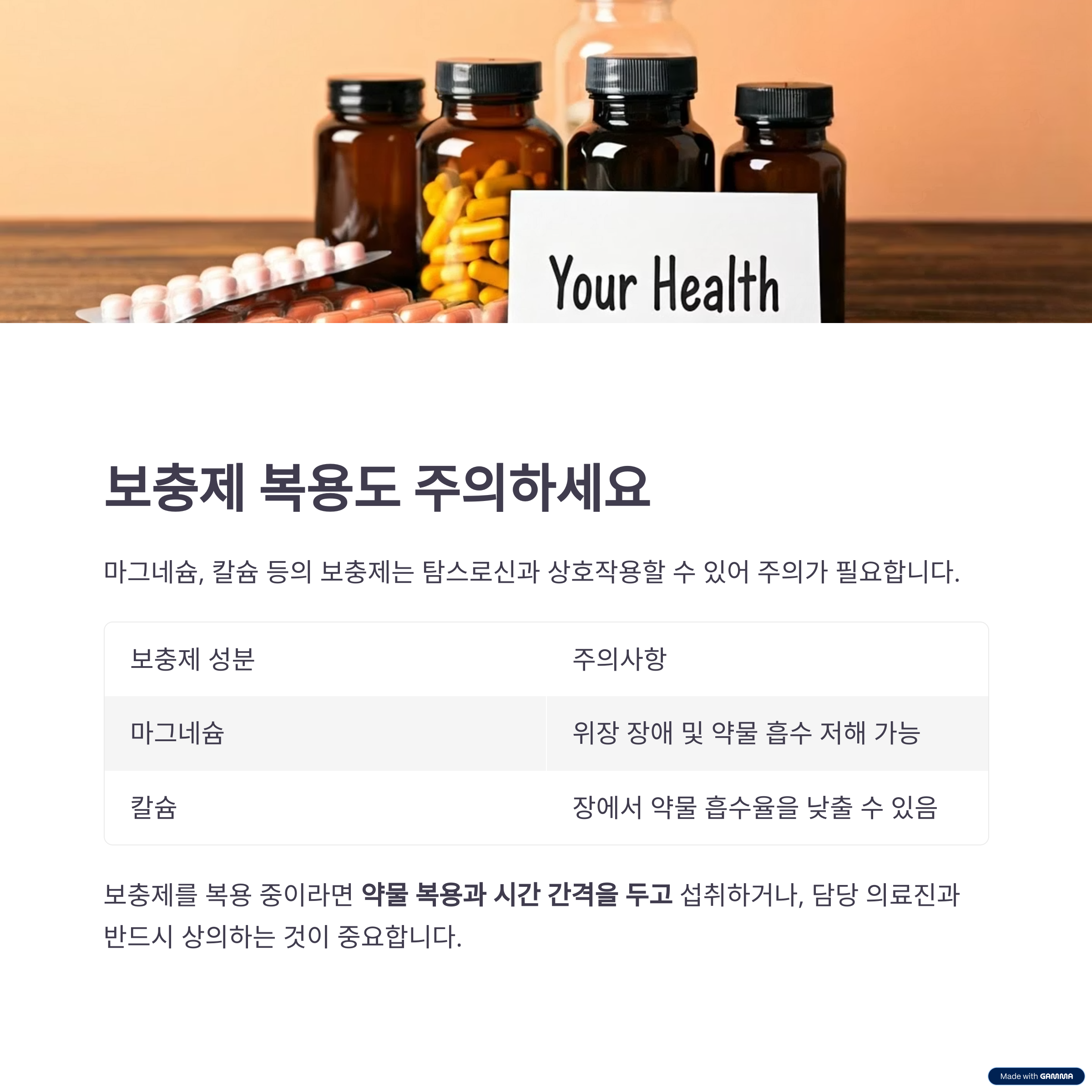상호작용할 수 있어 주의가 필요합니다. 본 글에서는 탐스로신 복용 시 피해야 할 음식,