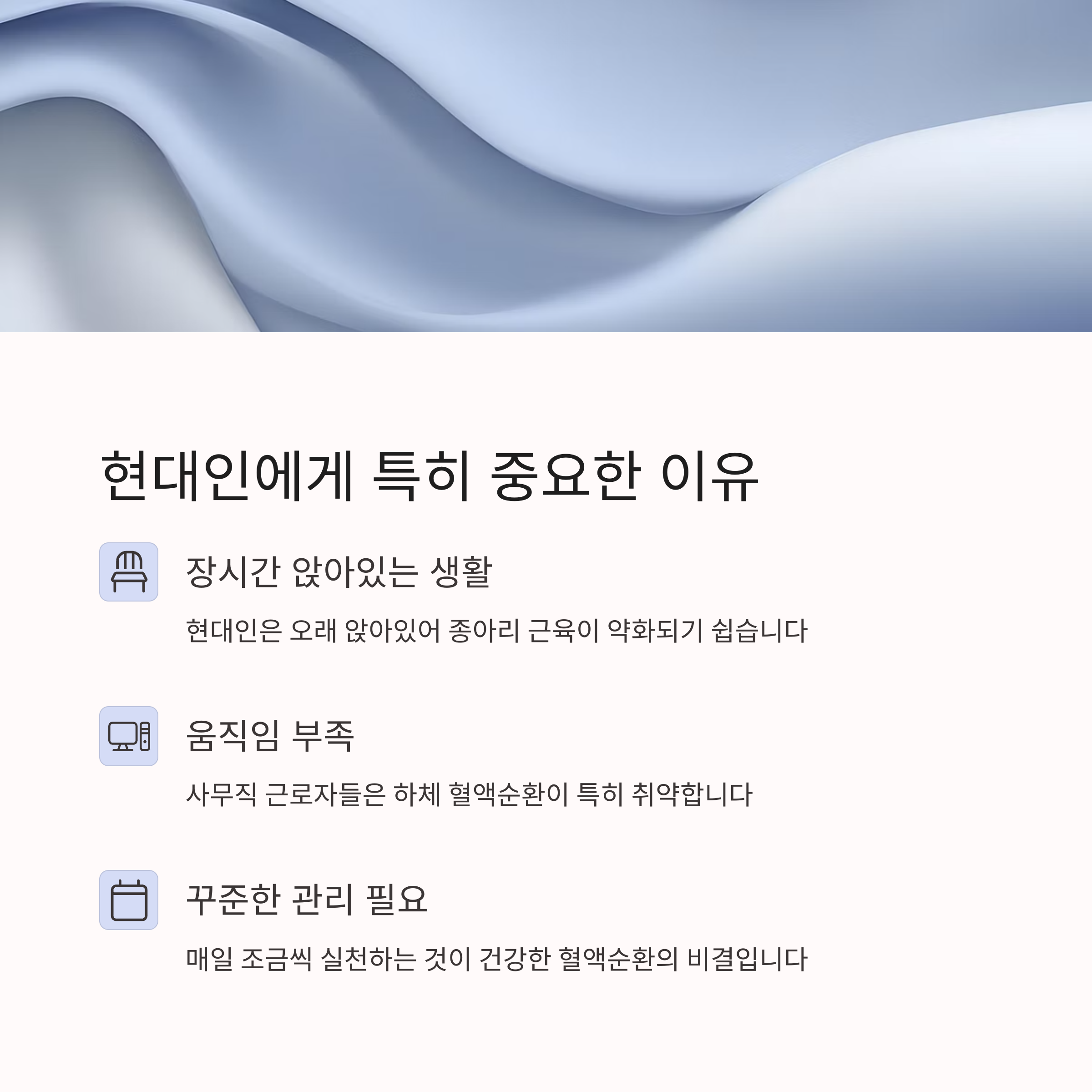 종아리 근육이라는 "제2의 심장"을 활성화함으로써, 전신 혈액순환과 하체 건강을 동시에 향상시킬 수 있습니다.