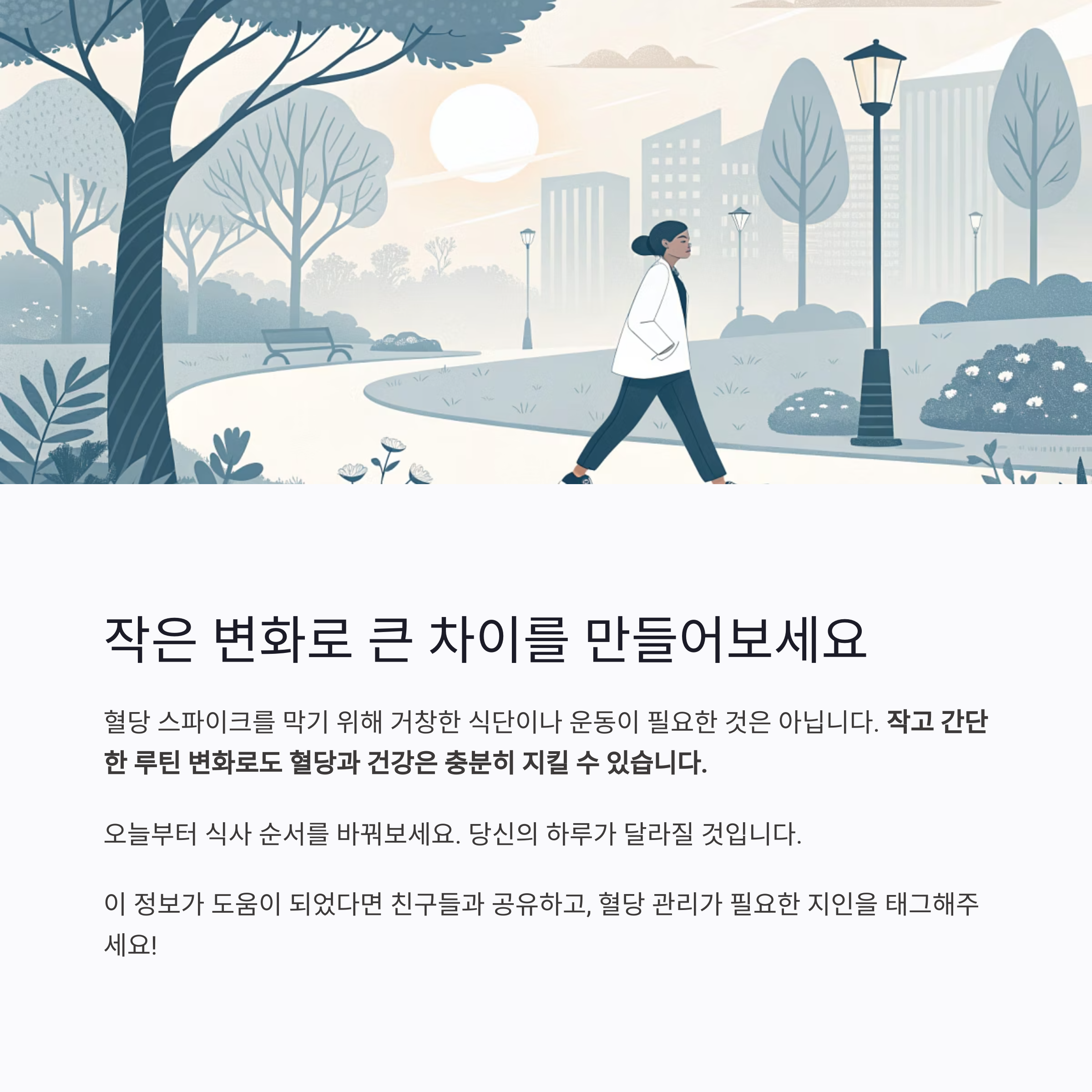 작고 간단한 루틴 변화로도 혈당과 건강은 충분히 지킬 수 있습니다.