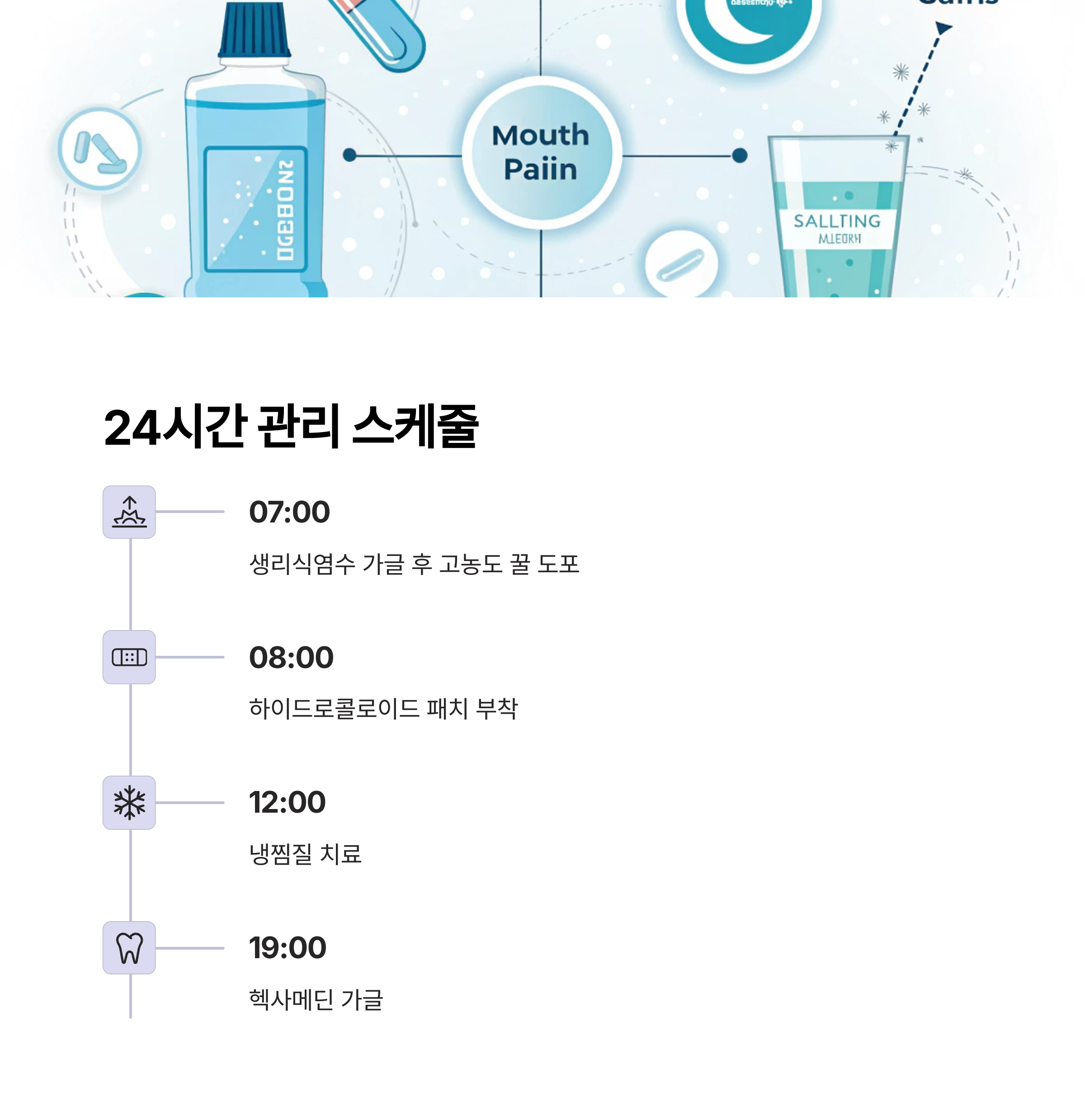 사용 후 30분간 음식·음료 섭취 금지가 원칙입니다