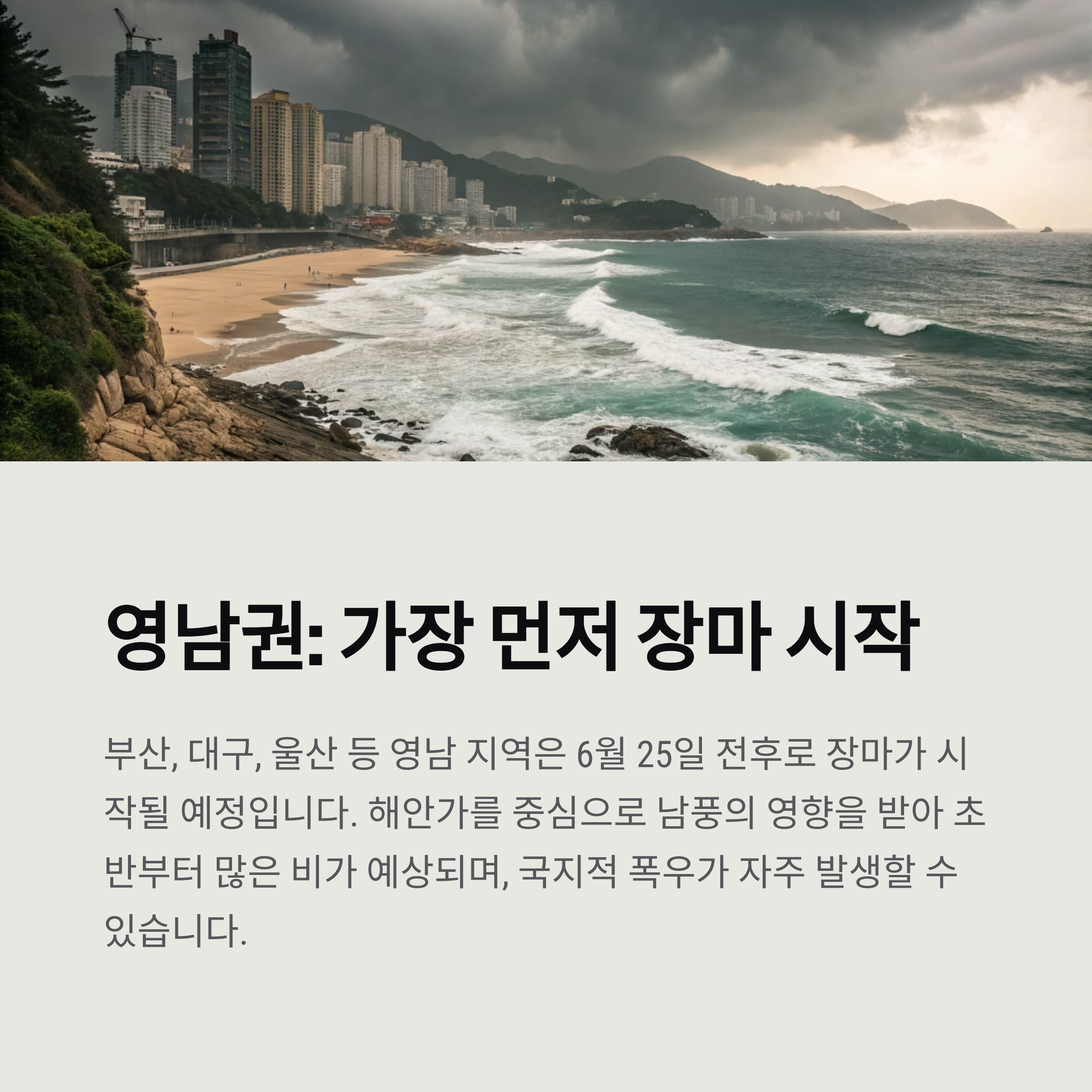| 영남권 | 6월 25일경 | 남해안 중심 초기 강수 많음 |