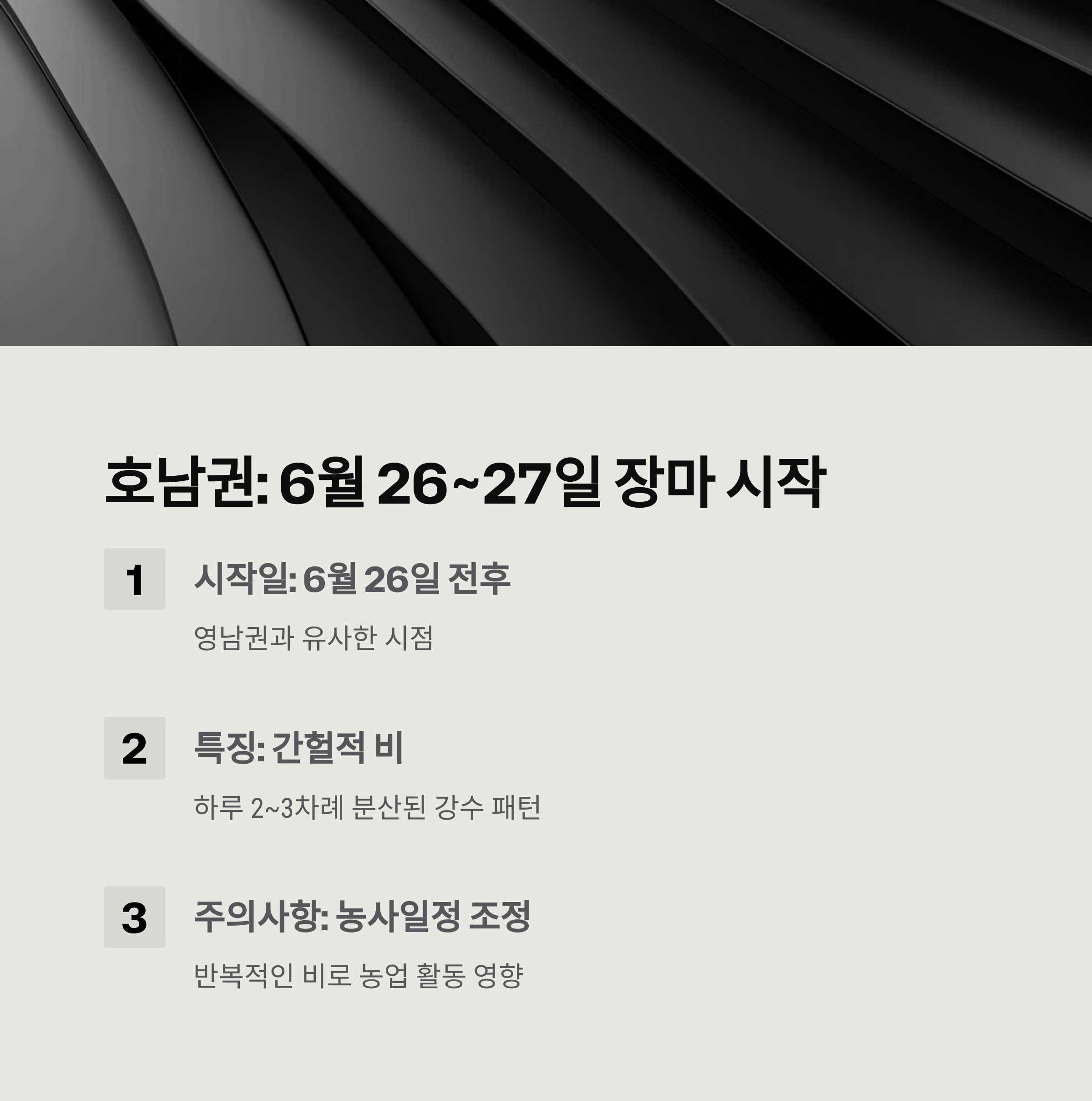 호남권: 영남과 유사, 6월 26~27일 예상
